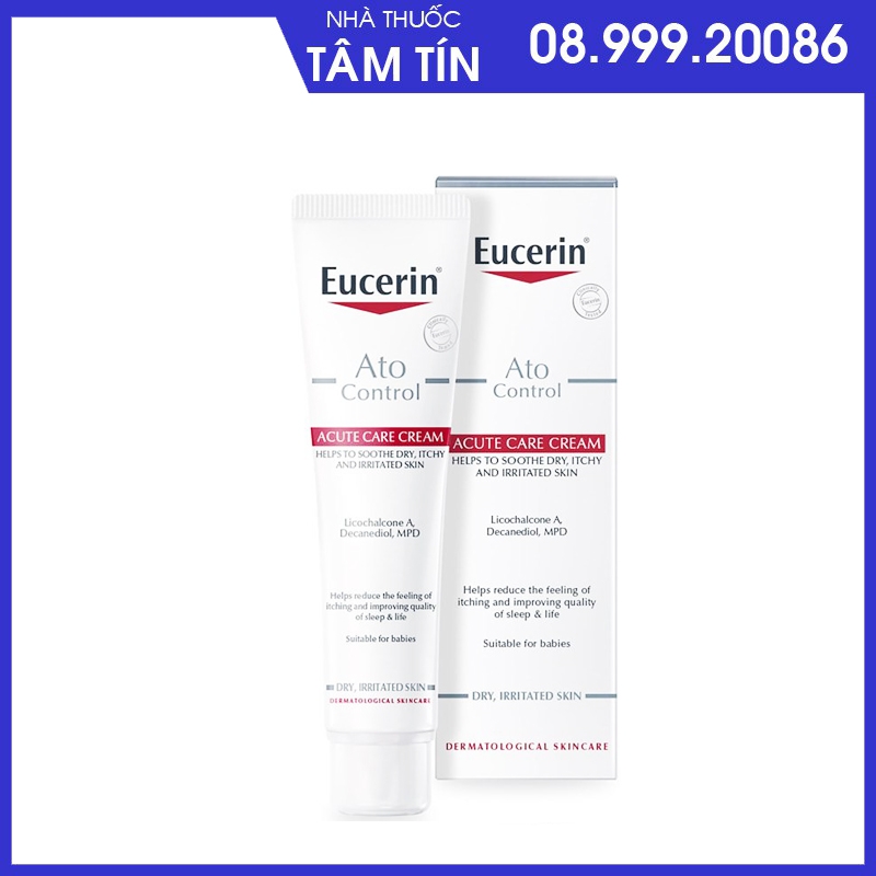 Kem dưỡng Eucerin AtopiControl Acute Care Cream là sản phẩm chứa các hợp chất gồm các acid béo Omega-6 giúp tái tạo làn da (Tinh dầu hoa Dạ Anh Thảo và Tinh dầu Hạt Nho), Licochalcone A giúp da dễ chịu (chiết xuất từ rễ cây cam thảo), Decandiol diệt khuẩn và Menthoxypropanediol giảm ngứa mang đến cảm giác tươi mát cho da.