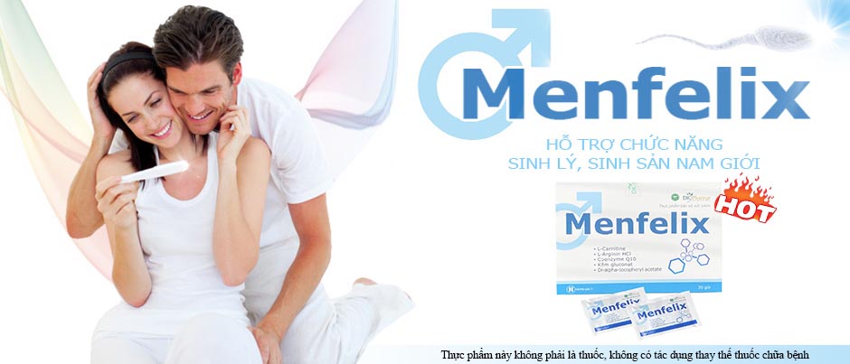 Menfelix là thực phẩm bảo vệ sức khỏe giúp tăng cường sinh lý và cải thiện chất lượng tinh trùng cho nam giới. Sản phẩm được sản xuất bởi DK Pharma, được đầu tăm đừ trong việc nghiên cứu và phát triển.